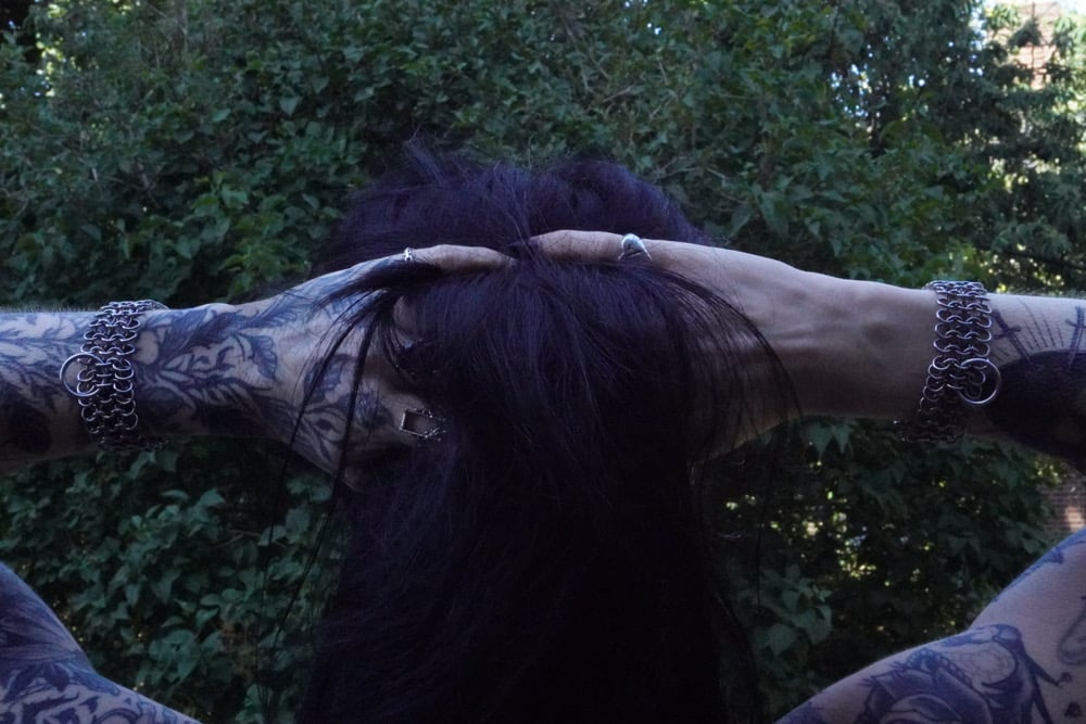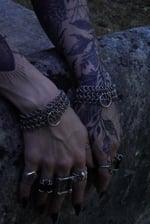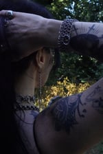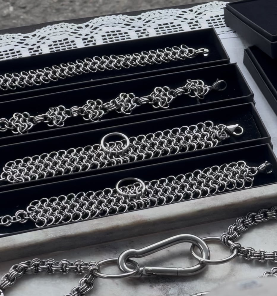 The Mesh Cuff is made using the 4 in 1 chainmail technique with an added O ring for an extra touch (and functional use in pairs)