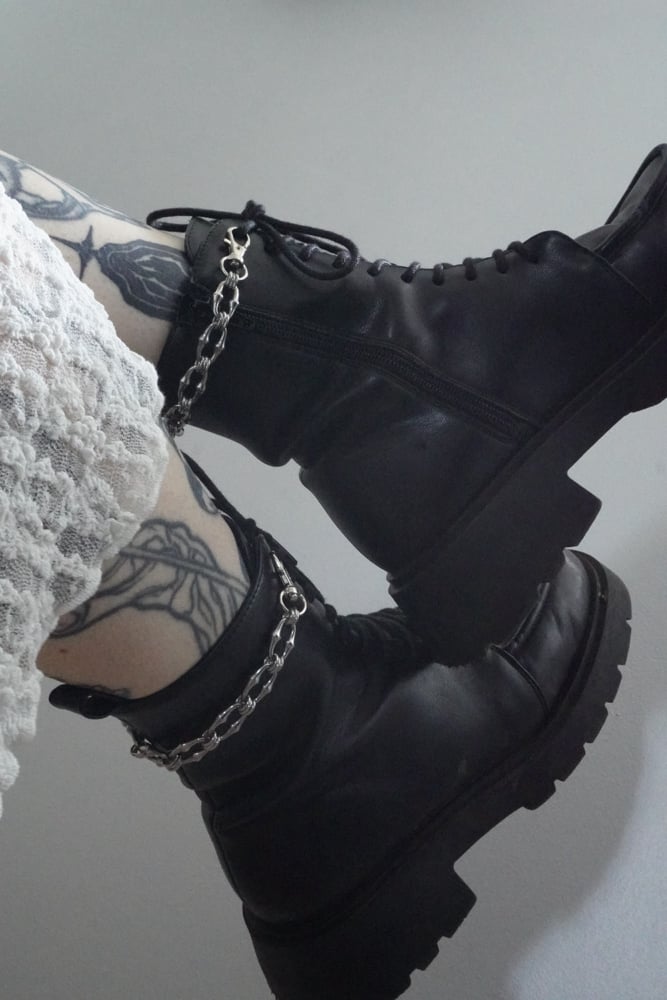 The shackle multi chain sports a double large clasp for maximum versitility, it can be used on your boots, bags, wallets or as a mini belt chain.