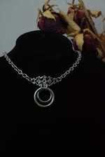 A simple choker designed for those who enjoyed the edgier look but prefer something slightly understated, the Sub choker is a delicate but beautifully detailed necklace with two large O rings sitting below a filigree patterned centre piece.
